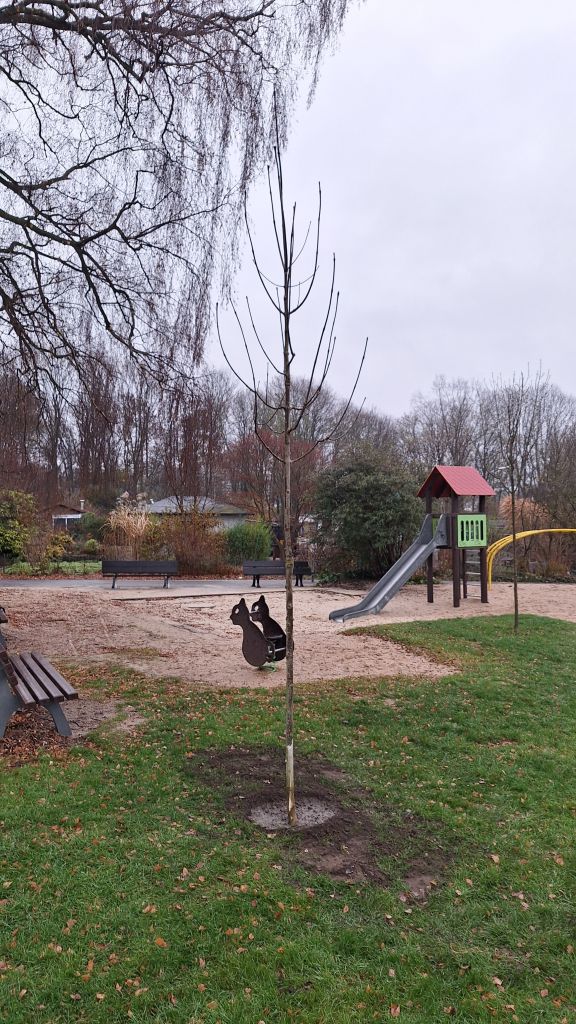 In den letzten Jahren wurden - zumeist durch Unterstützung des "Grüner Kreis Dortmund" - 8 neue Bäume (4 Blumeneschen, 3 Judasbäume und 1 Baum-Hasel) auf dem Spielplatz gepflanzt. Sie sollen mal für Schatten sorgen, wenn unsere wunderschöne riesige Birke ihr Lebensende erreicht hat.